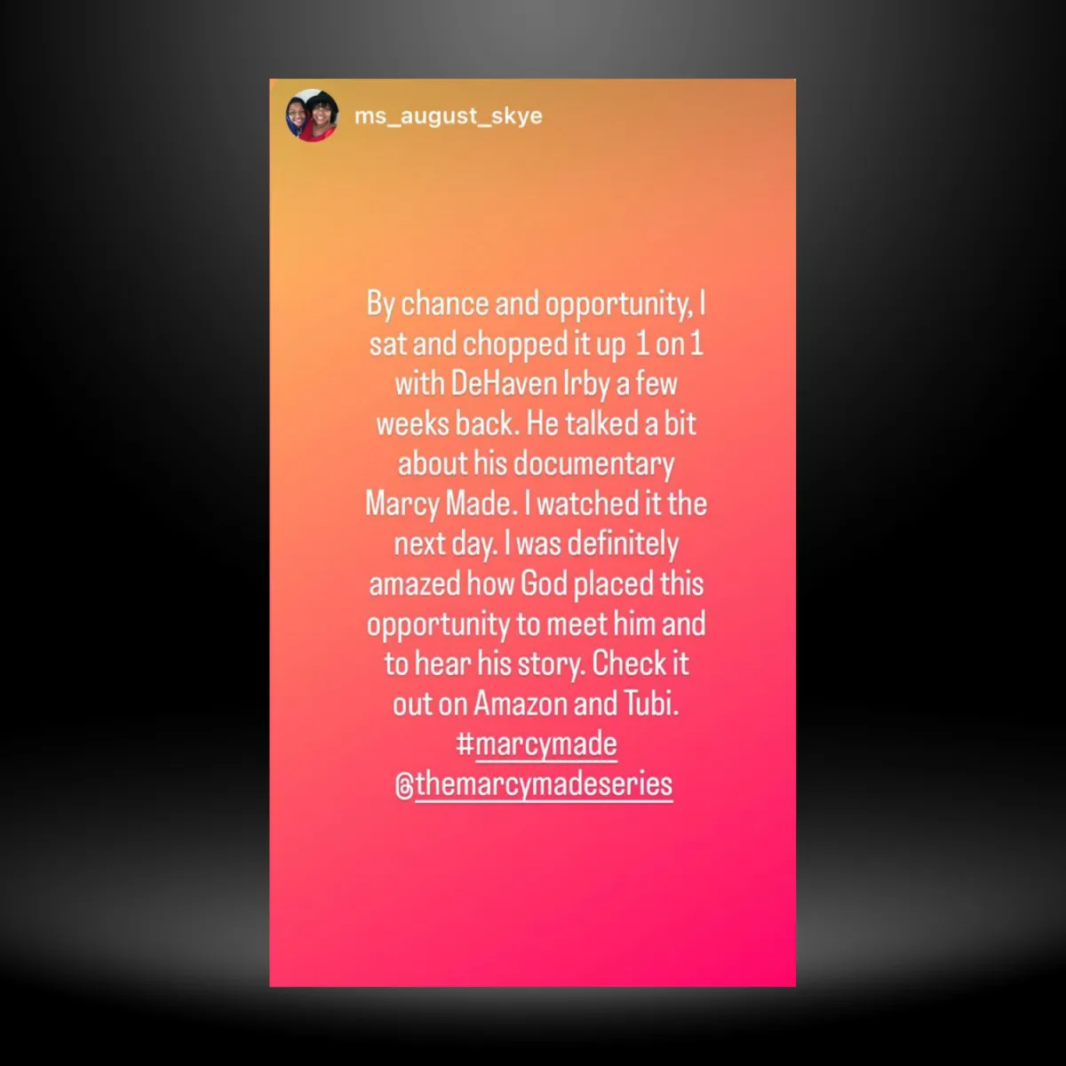 Thanks for supporting the stories about my life. All my stories are real, all my stories are true! Please continue to like and share @themarcymadeseries if you haven’t seen it yet it’s classic